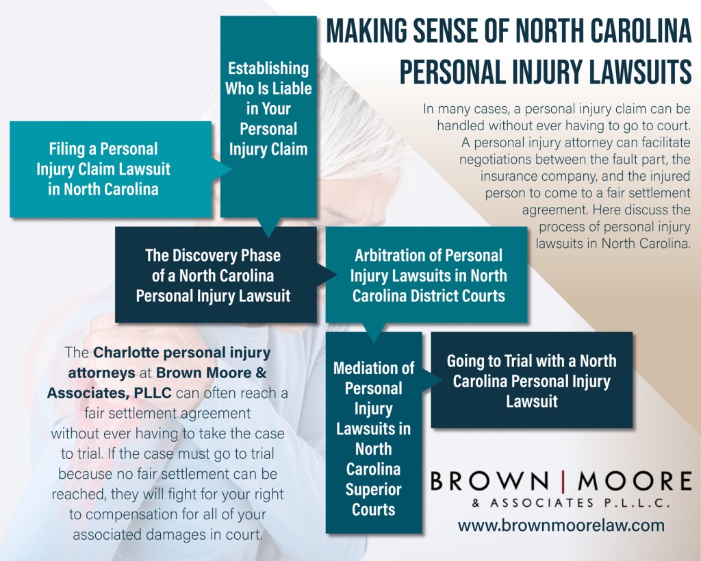 Personal injury claim lawsuits are civil proceedings which are filed in the North Carolina Civil Court. Which court you file the claim with will depend on the amount of compensation you are trying to obtain. At the Brown Moore & Associates, their personal injury attorneys in Charlotte can often reach a fair settlement agreement without ever having to take the case to trial.